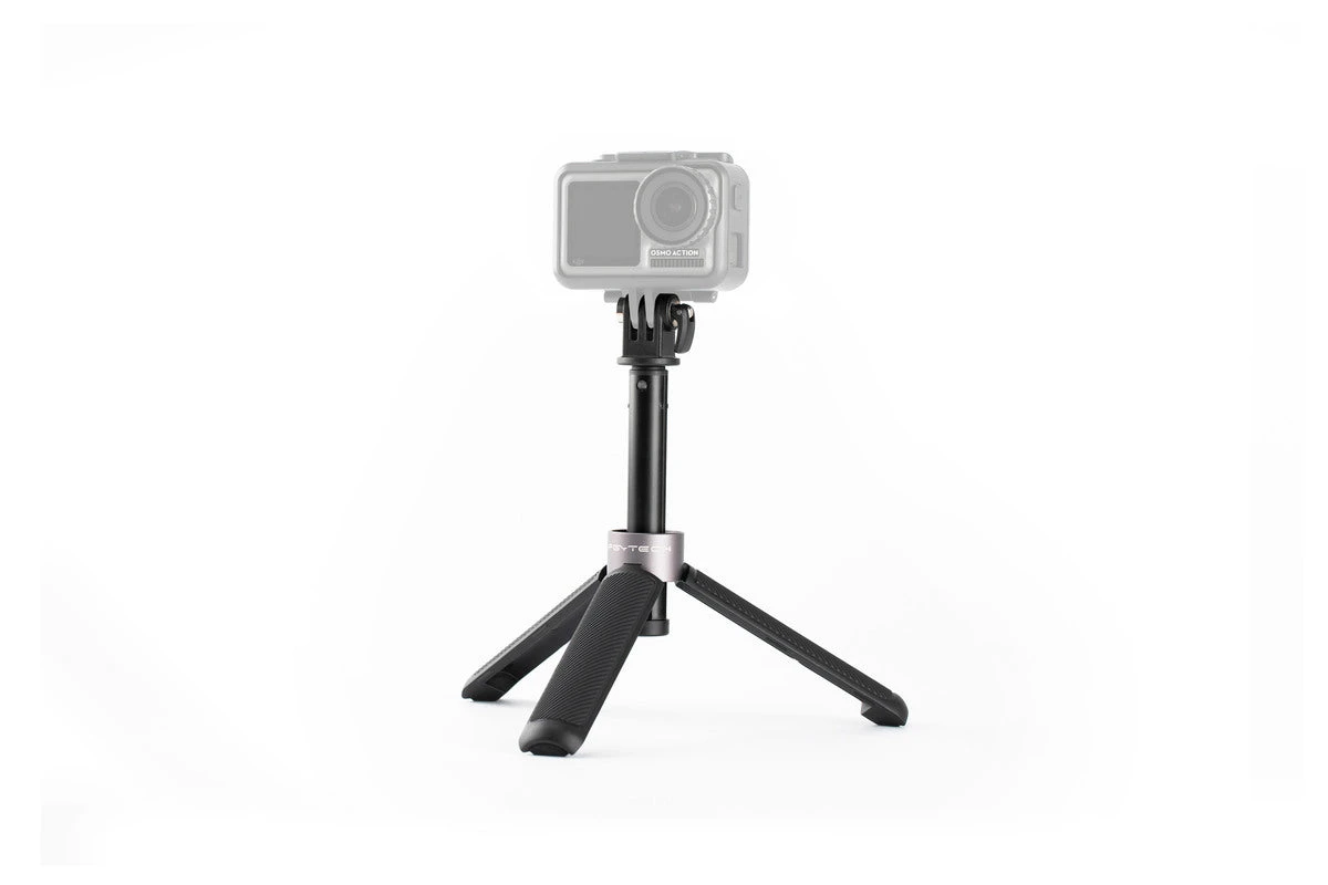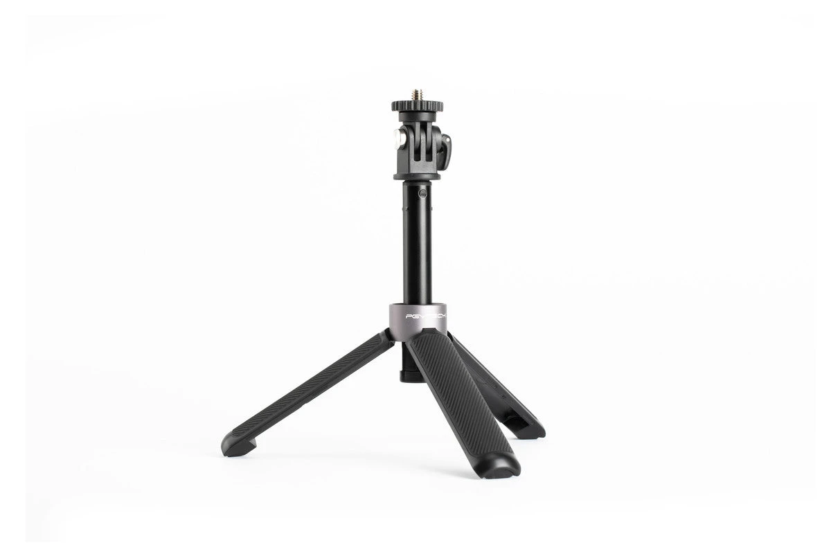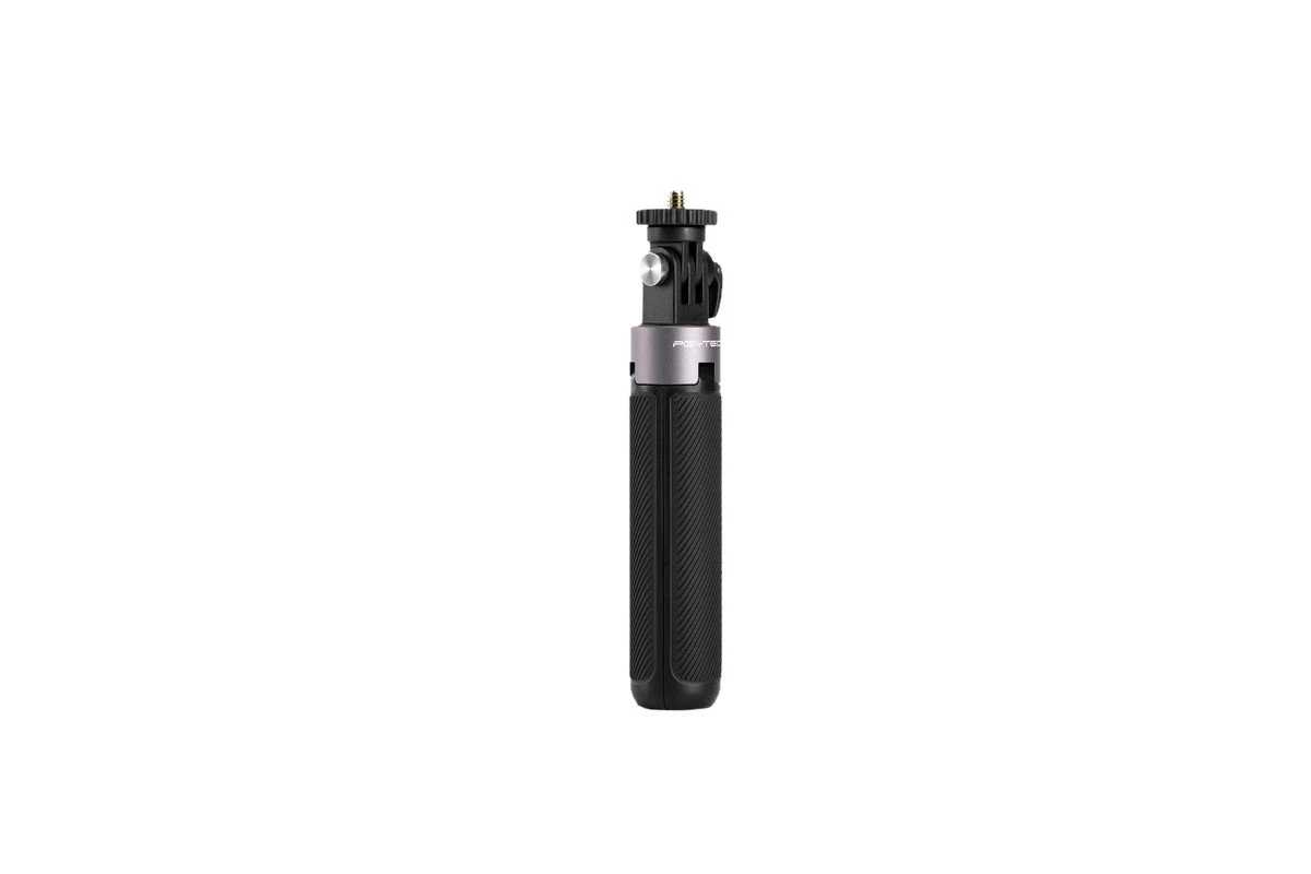 PGYTECH Action Camera Extension Pole Tripod Mini can be used for a selfie when combined with OSMO POCKET, GoPro, and many other usage scenarios when an extension pole is needed. It utilizes an all-in-one compact design that freely transitions between extension pole and tripod stand. The universal interface at the top of the pole, coupled with another universal interface with a 1/4″ mount bolt, is compatible with a variety of devices and extends the connecting options for your device. The grip handle is made of soft rubber with a non-slip texture. Fast collapse is achieved with three tripod magnet, and the pole is retractable with four extension length. 40cm in length with tripod fully extended and 14.5cm when stored in your pocket, with a weight of only 105g.v