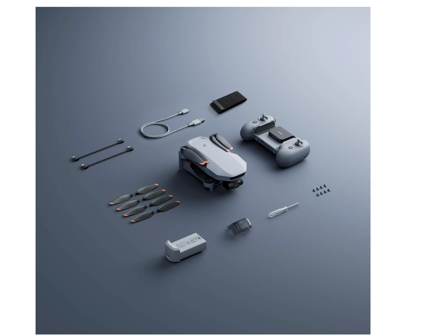 1 x Battery; 1x Propeller Holder Strap, 8 x Spare Propellers (4 Pairs); 8 x Spare Screws; 1 x Screwdriver, 1 x USB-C Charging Cable, 1 x ATOM 2 Drone; 1 x Remote Controller; 1xGimbal Protector, 2 x Adapter Cable (USB Type-C Connector and Lightning Connector) |