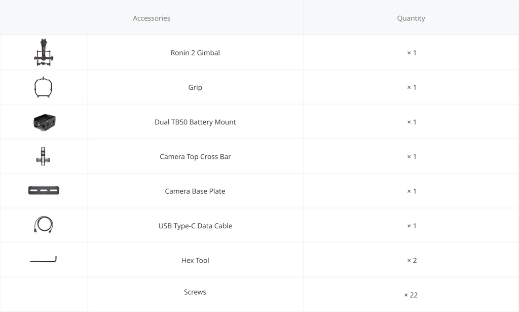 - On-board power for camera and accessories